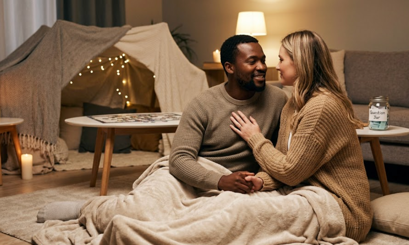 - The Vibe Shift: You can’t create a new experience in the exact same old context. Change something. Light a few candles instead of the overhead glare. Put on that nice sweater you save for going out. Sit on the floor with a blanket fort. Move the dinner to the coffee table. The physical shift signals to your brains: “This time is different.”
