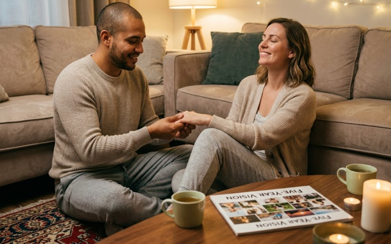 The most radical act in modern love isn’t swiping a thousand times. It’s putting one screen away, turning toward one person, and saying, “Tell me something real.” Your relationship doesn’t live in a restaurant you visit once a month; it lives in the daily space you share. The couch, the kitchen floor, the blanket fort—these are the sacred grounds of your ongoing story. Reclaim them.